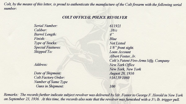 records also note that the revolver was furnished with a 3 1/2 lb. trigger