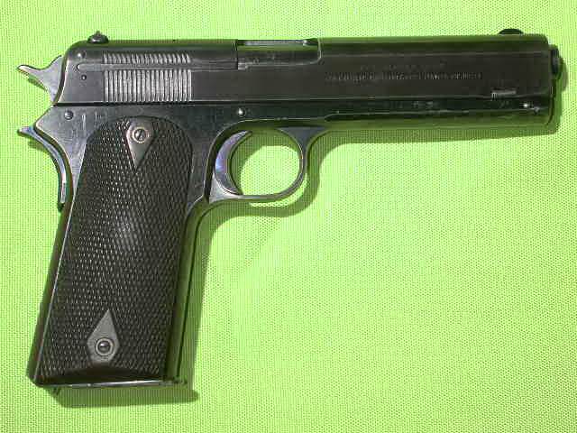 and lengthened trigger stirrup pin. Shipped to the U.S. Government, Springfield Armory, March 17, 1908. This example was