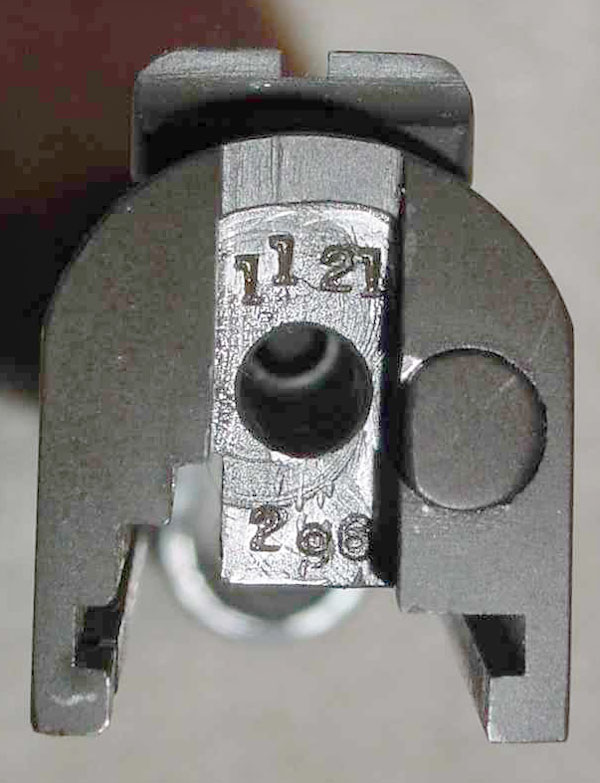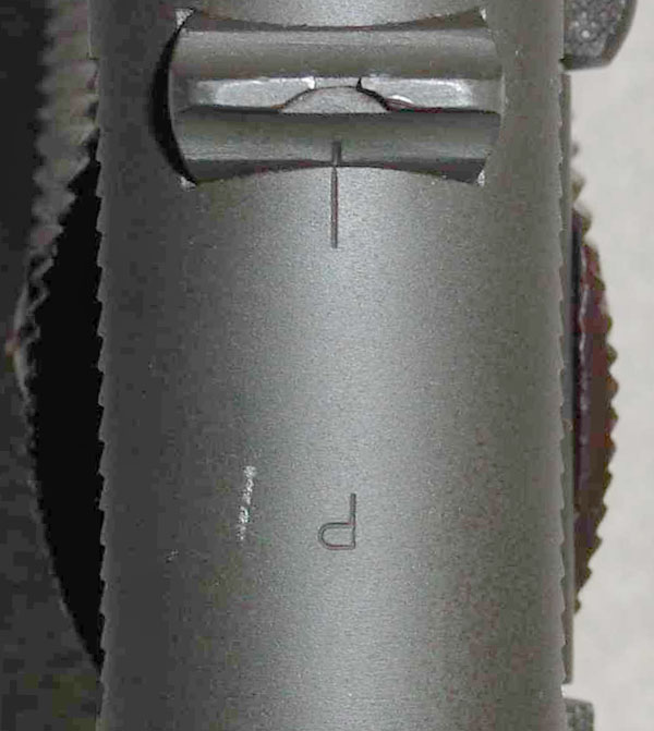 "F" .  This marking appeared on barrels from approximately 933,000 through end of production